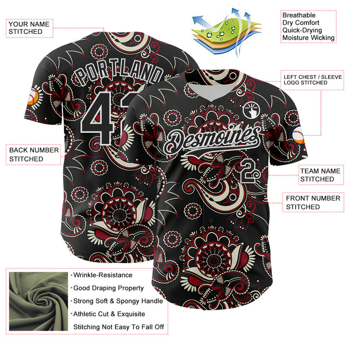 Custom Black White 3D Pattern Design Burner Costumes Paisley Bandana Authentic Baseball Jersey