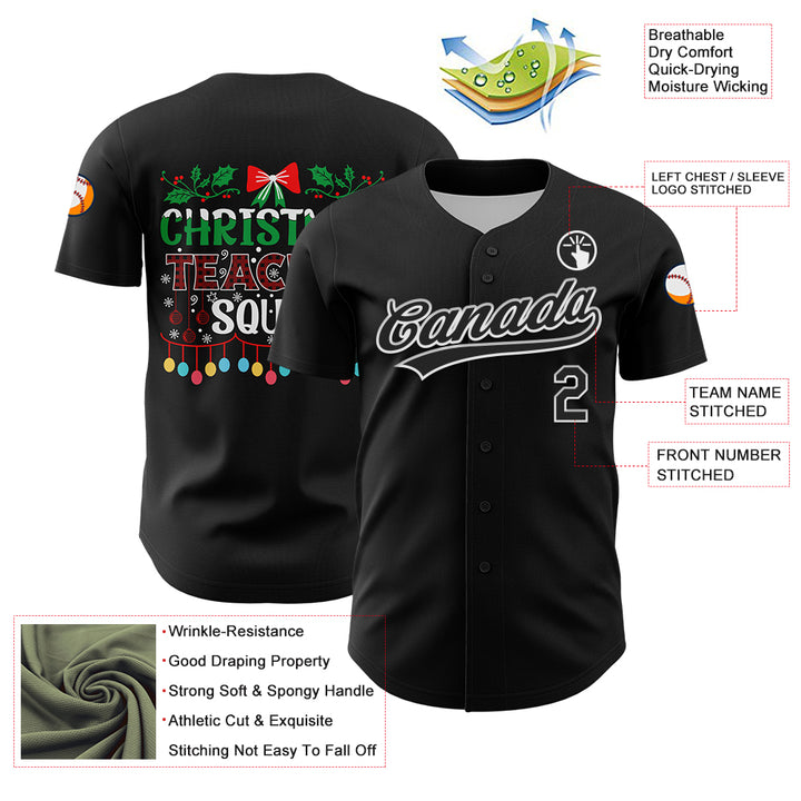 Custom Black Kelly Green-Red 3D Funny Christmas Authentic Baseball Jersey