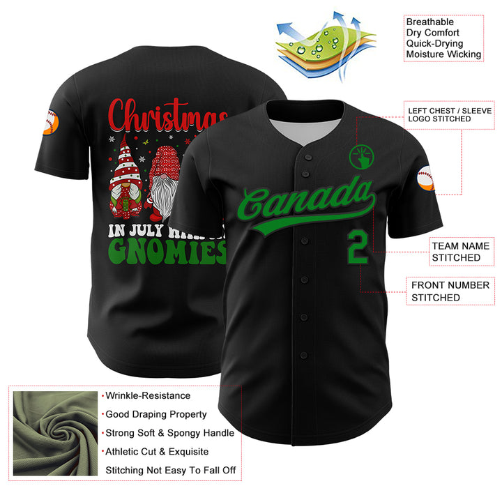 Custom Black Grass Green-Red 3D Funny Christmas Authentic Baseball Jersey
