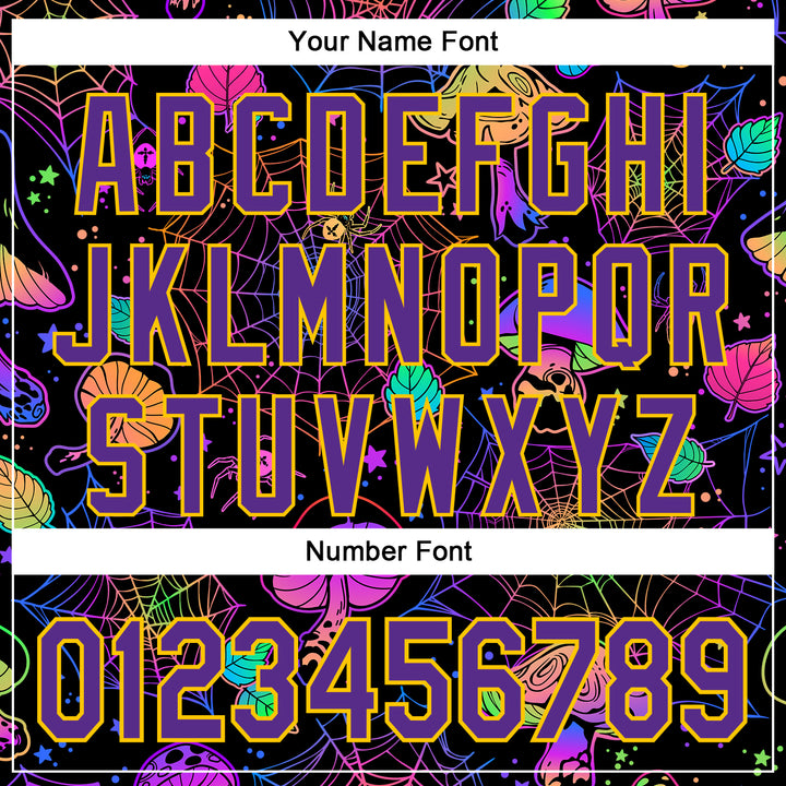 Custom Black Purple-Yellow 3D Pattern Design Trippy Magic Mushrooms Spider Web Authentic Baseball Jersey