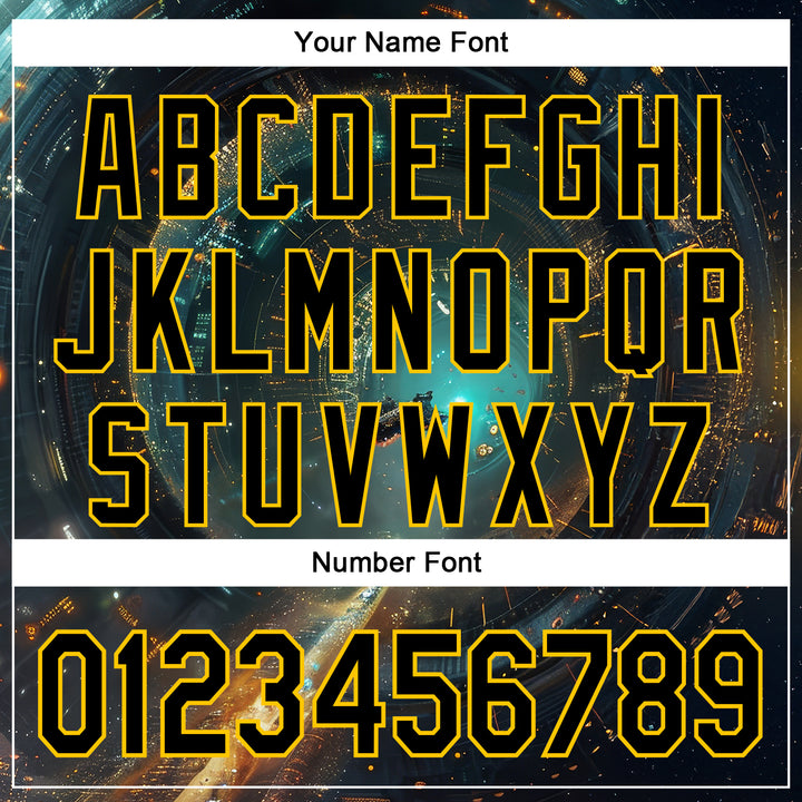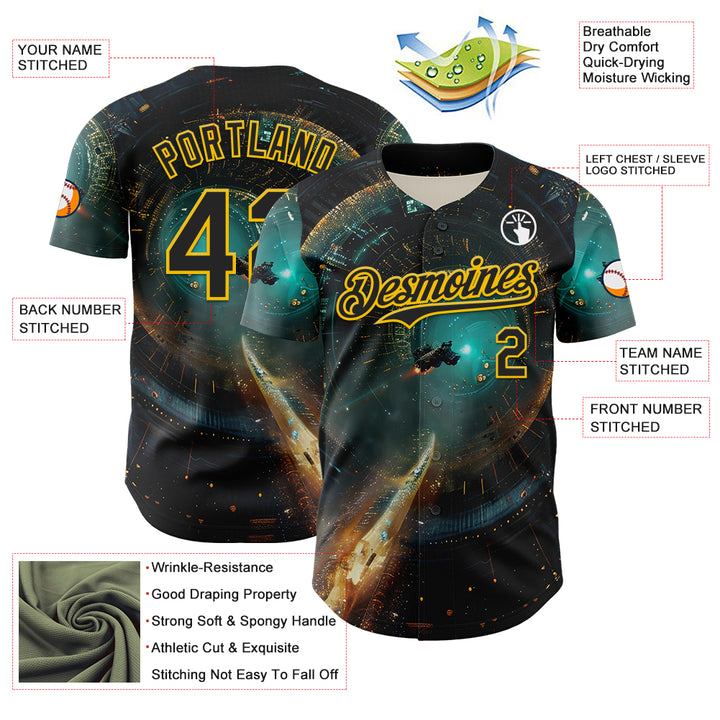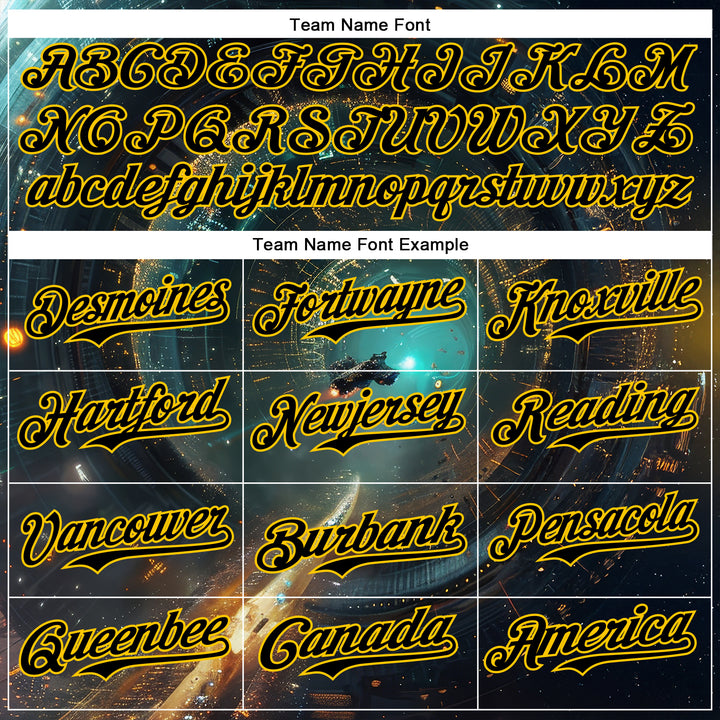 Custom Blue Black-Yellow 3D Pattern Design Outer Space Starships Authentic Baseball Jersey