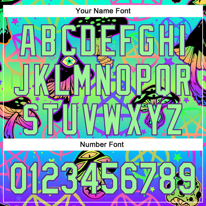 Custom Blue Pea Green-Purple 3D Pattern Design Trippy Magic Mushrooms Pentacle Authentic Baseball Jersey