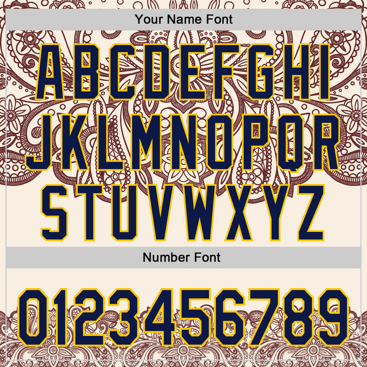 Custom Cream Navy Red-Yellow 3D Pattern Design Burner Costumes Paisley Bandana Authentic Baseball Jersey