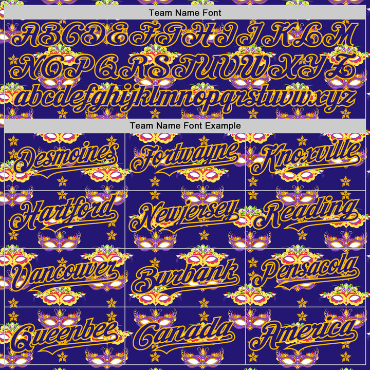 Custom Dark Purple Gold 3D Pattern Design Mardi Gras Shrove Tuesday Authentic Baseball Jersey