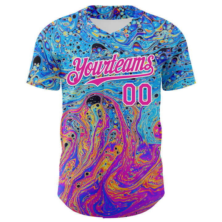 Custom Electric Blue Deep Pink-White 3D Pattern Design Rave Psychedelic Fluid Art Authentic Baseball Jersey