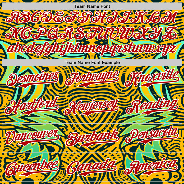Custom Gold Red Black Green-White 3D Pattern Design Burner Costumes Tribal Authentic Baseball Jersey