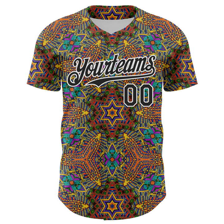 Custom Gold Black-White 3D Pattern Design Burner Costumes Trippy Authentic Baseball Jersey