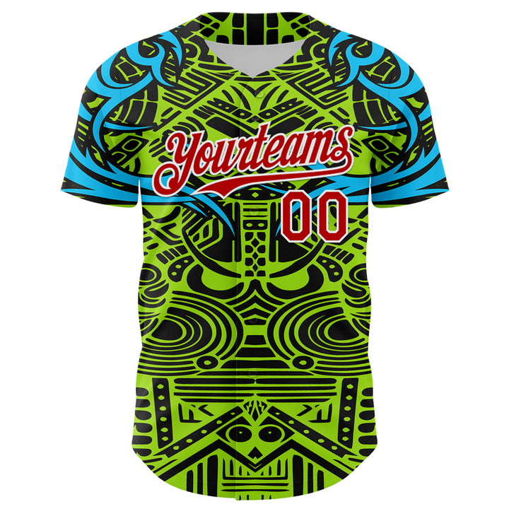 Custom Green Red Blue Black-White 3D Pattern Design Burner Costumes Tribal Authentic Baseball Jersey