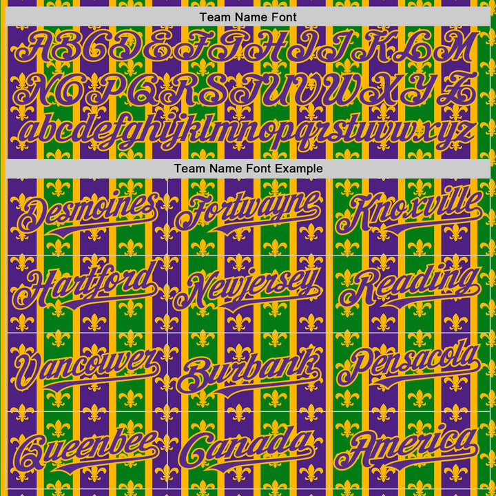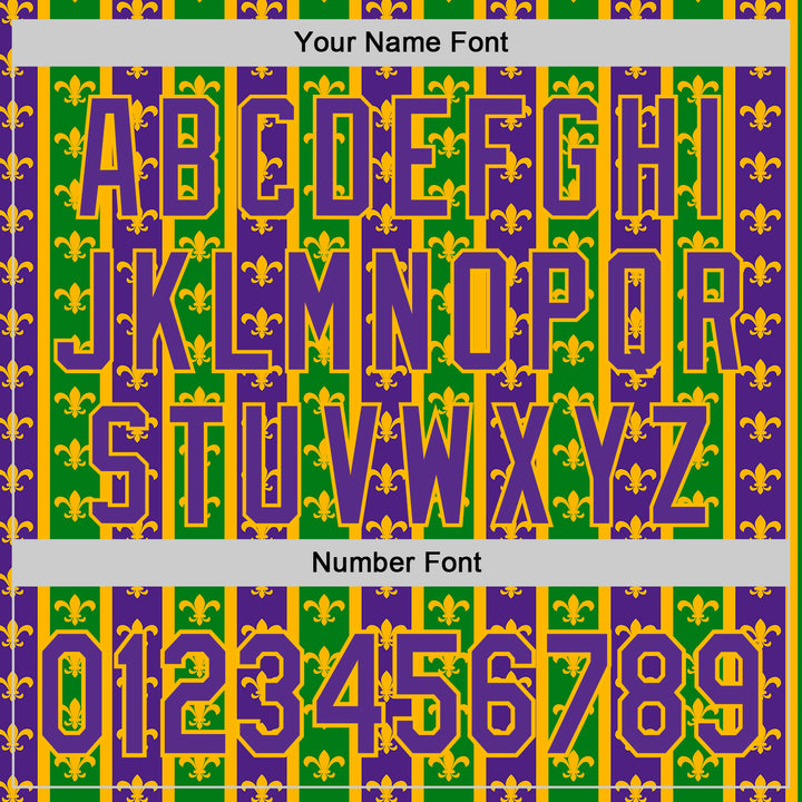 Custom Green Purple-Gold 3D Pattern Design Mardi Gras Shrove Tuesday Authentic Baseball Jersey