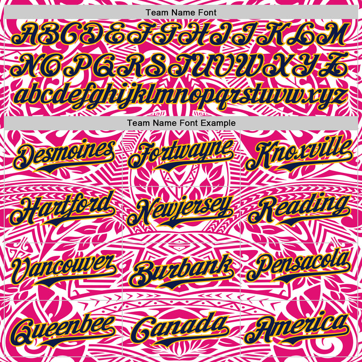 Custom Hot Pink Navy-Gold 3D Pattern Design Burner Costumes Ethnic Floral Authentic Baseball Jersey