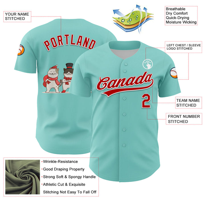 Custom Ice Blue Red-White 3D Funny Christmas Authentic Baseball Jersey
