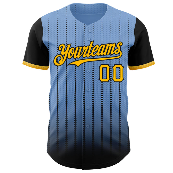 Custom Light Blue Gold-Black 3D Pattern Design Gradient Geometric Shape Authentic Baseball Jersey