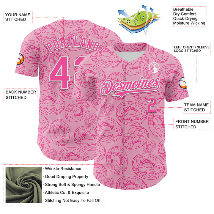 Custom Light Pink Pink-White 3D Pattern Design Christmas Foodie Food Dessert Donut Authentic Baseball Jersey