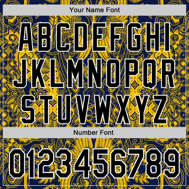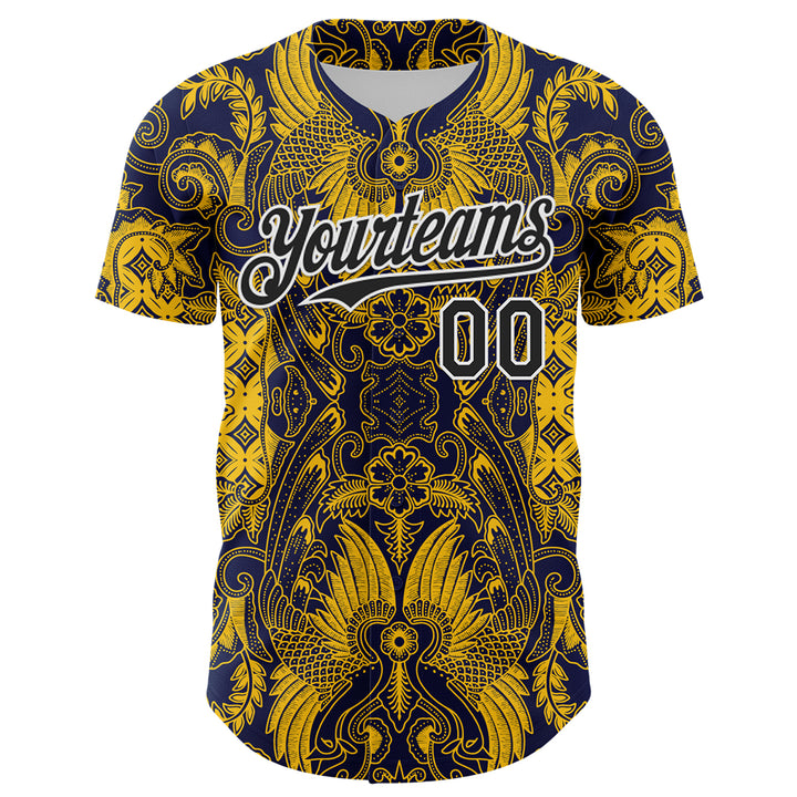 Custom Navy Black Yellow-White 3D Pattern Design Burner Costumes Paisley Authentic Baseball Jersey
