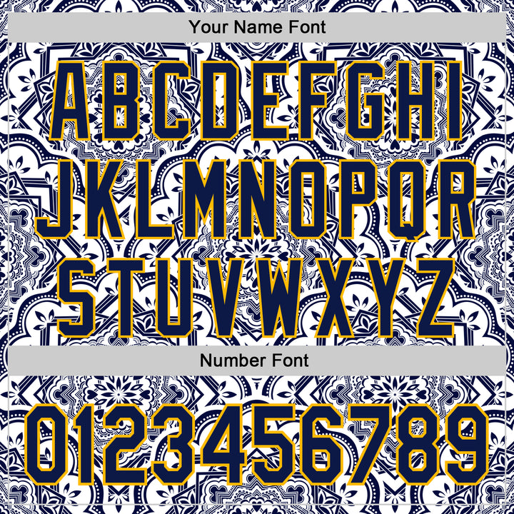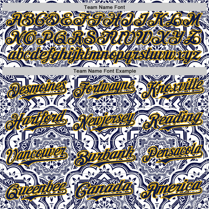 Custom Navy Gold 3D Pattern Design Burner Costumes Damask Authentic Baseball Jersey