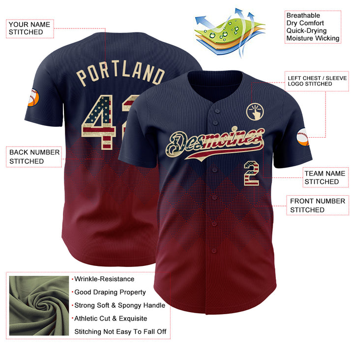 Custom Navy Vintage USA Flag Crimson-Cream 3D Gradient Square Shape Authentic Baseball Jersey