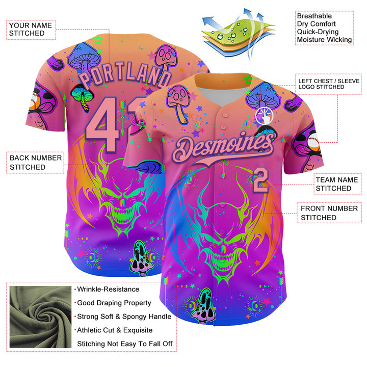 Custom Pink Medium Pink-Purple 3D Pattern Design Trippy Magic Mushrooms Dragon Authentic Baseball Jersey