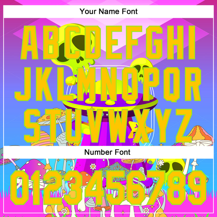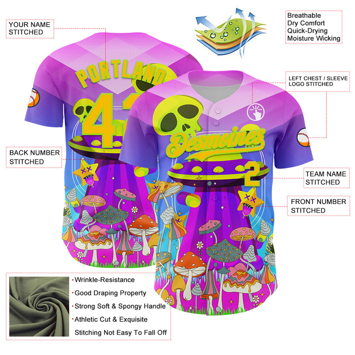 Custom Purple Yellow-Neon Green 3D Pattern Design Trippy Magic Mushrooms Alien Authentic Baseball Jersey