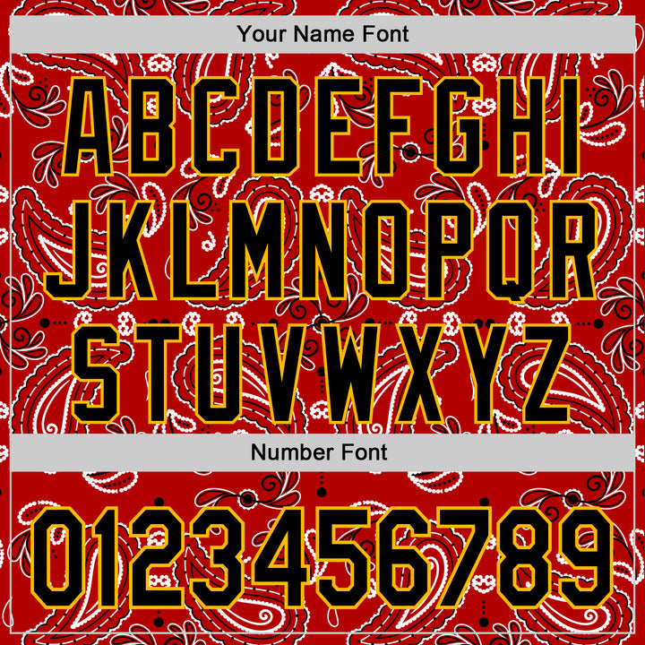 Custom Red Black-Gold 3D Pattern Design Rave Party Paisley Bandana Authentic Baseball Jersey