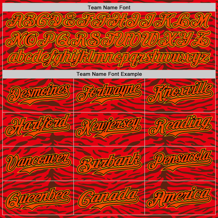 Custom Red Orange Black-Yellow 3D Pattern Design Burner Costumes Animal Tiger Print Authentic Baseball Jersey