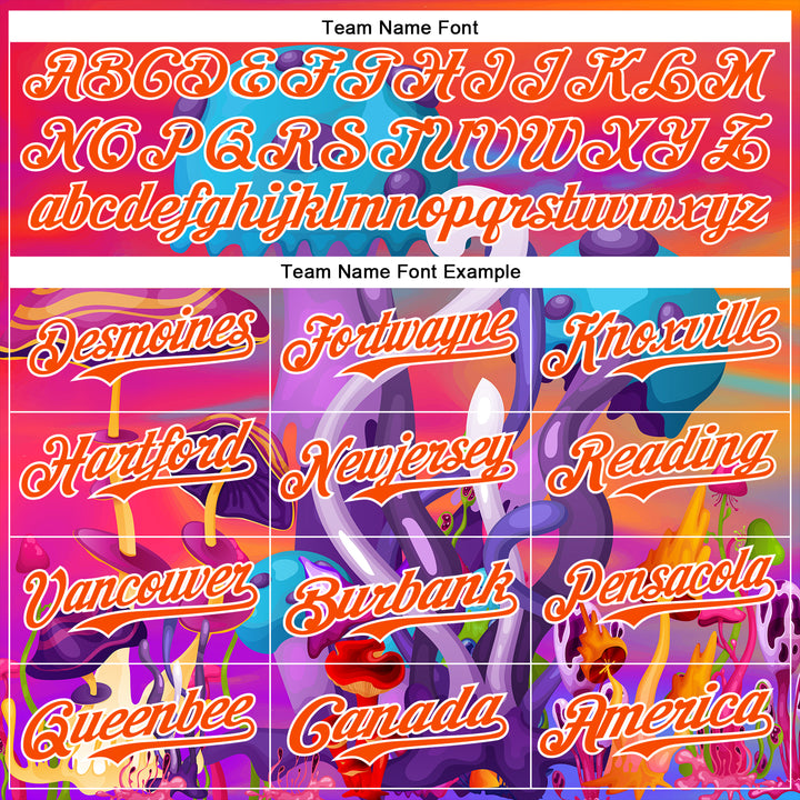 Custom Red Orange Purple-White 3D Pattern Design Trippy Psychedelic Magic Mushrooms Authentic Baseball Jersey