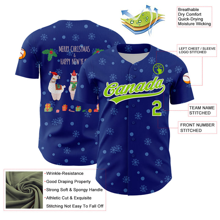Custom Royal Neon Green-White 3D Funny Christmas Authentic Baseball Jersey