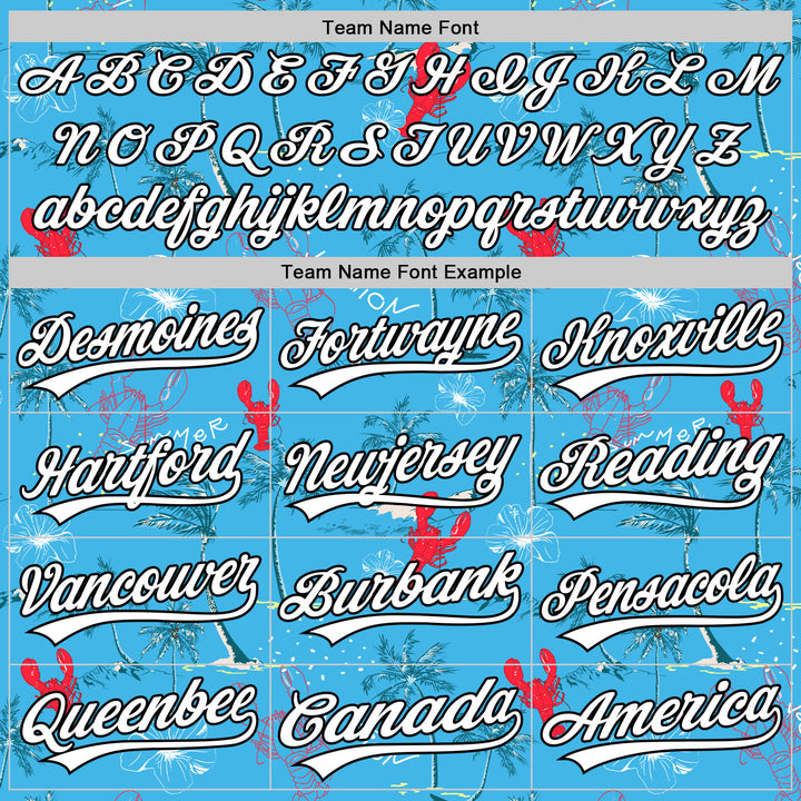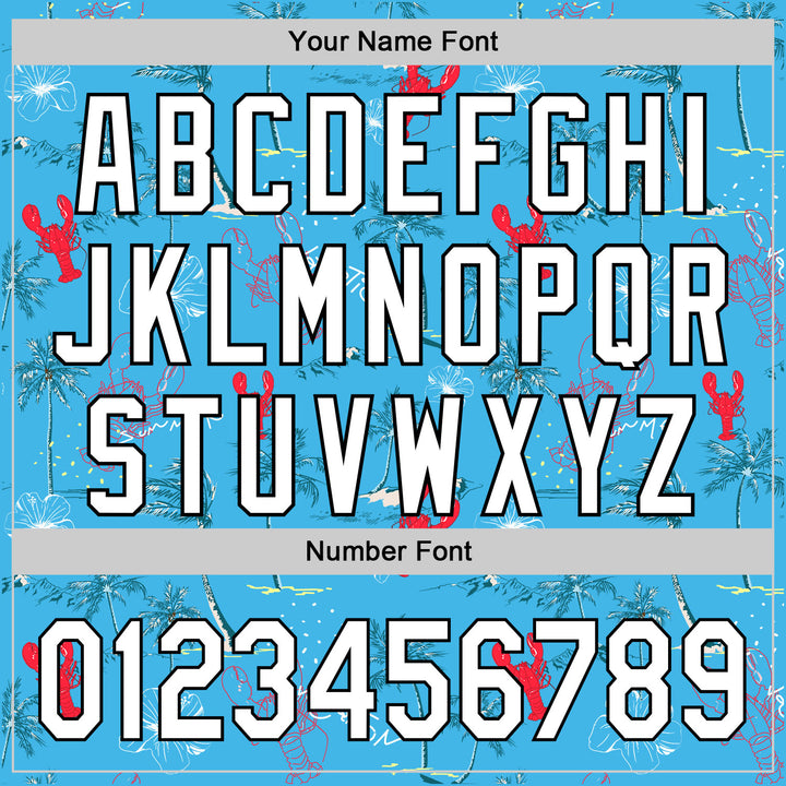 Custom Sky Blue White-Black 3D Tropical Beach Hawaii Palm Tree And Lobster Authentic Baseball Jersey