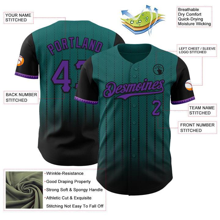 Custom Teal Purple-Black 3D Pattern Design Gradient Geometric Shape Authentic Baseball Jersey