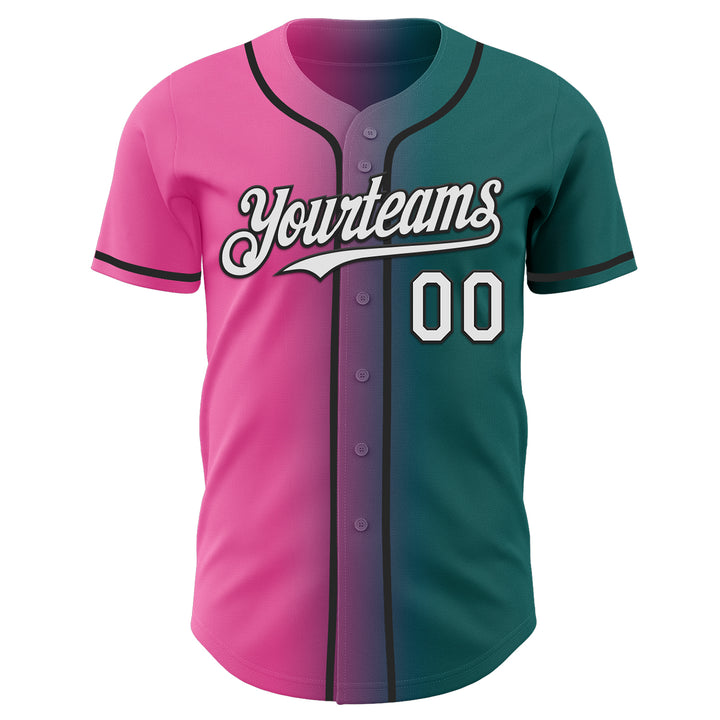 Custom Teal White Pink-Black Authentic Gradient Fashion Baseball Jersey