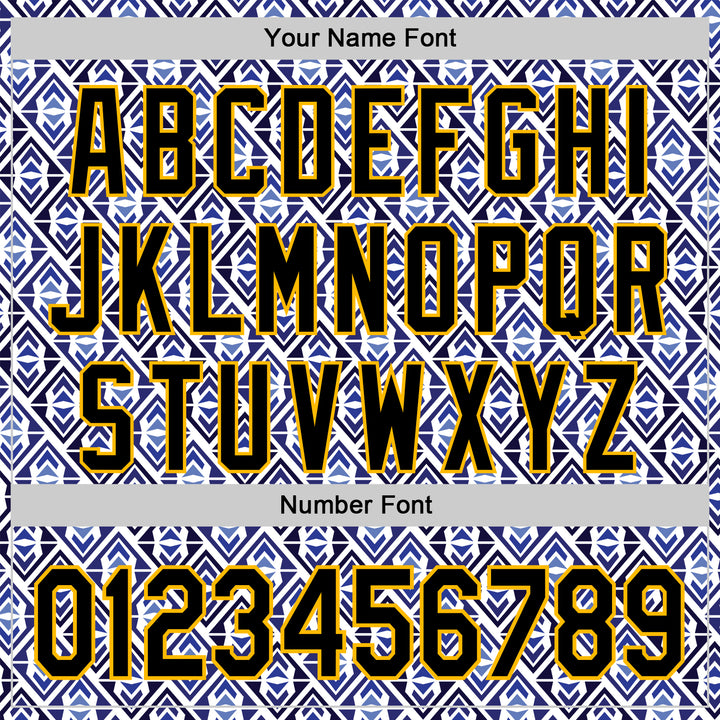 Custom White Black Royal-Gold 3D Pattern Design Rave Party Monogram Geometric Shape Authentic Baseball Jersey