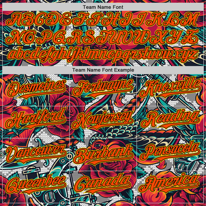Custom White Orange Black-Yellow 3D Pattern Design Rave Party Roses Vintage Tattoos Authentic Baseball Jersey
