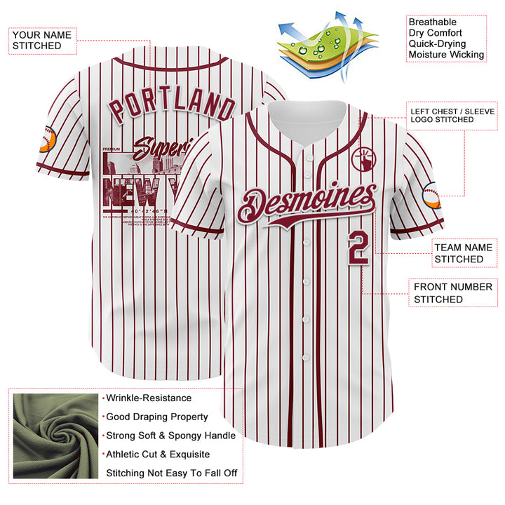 Custom White Crimson Pinstripe Crimson 3D Pattern Design New York Cityscape Authentic Baseball Jersey