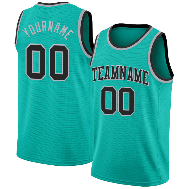 Custom Aqua Black-Gray Authentic Basketball Jersey