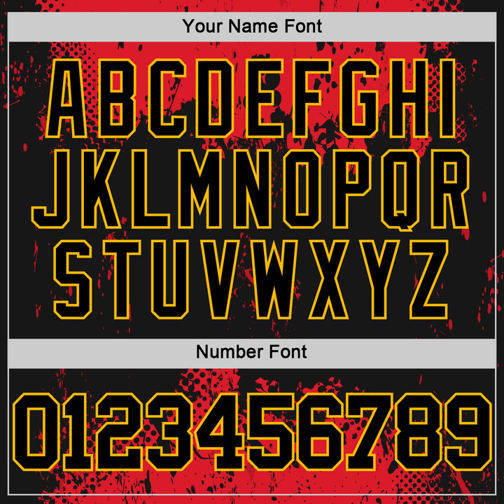 Custom Black Red-Gold Abstract Splatter Grunge Art Round Neck Sublimation Basketball Suit Jersey