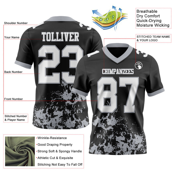 Custom Black White-Gray 3D Pattern Splash Authentic Football Jersey