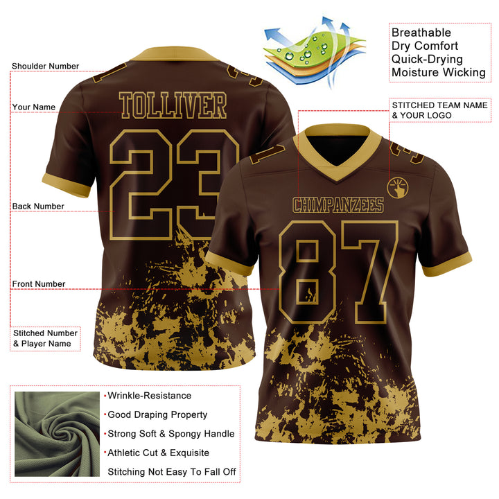 Custom Brown Old Gold 3D Pattern Splash Authentic Football Jersey