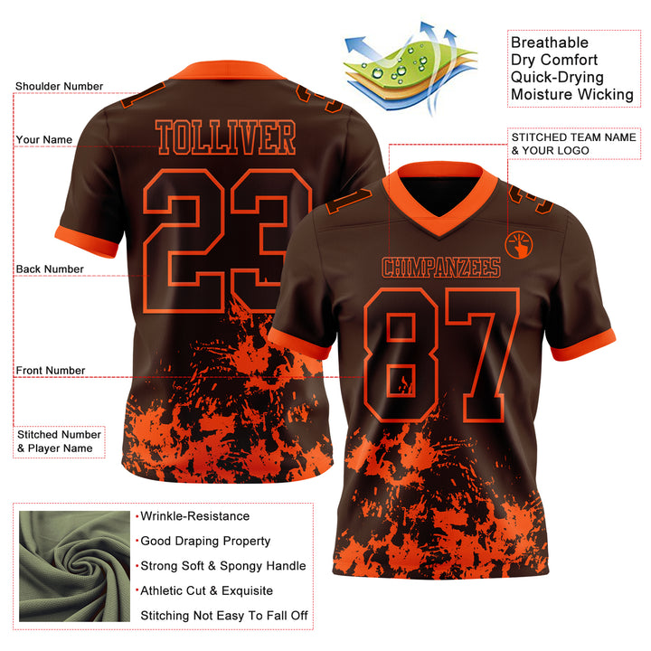 Custom Brown Orange 3D Pattern Splash Authentic Football Jersey