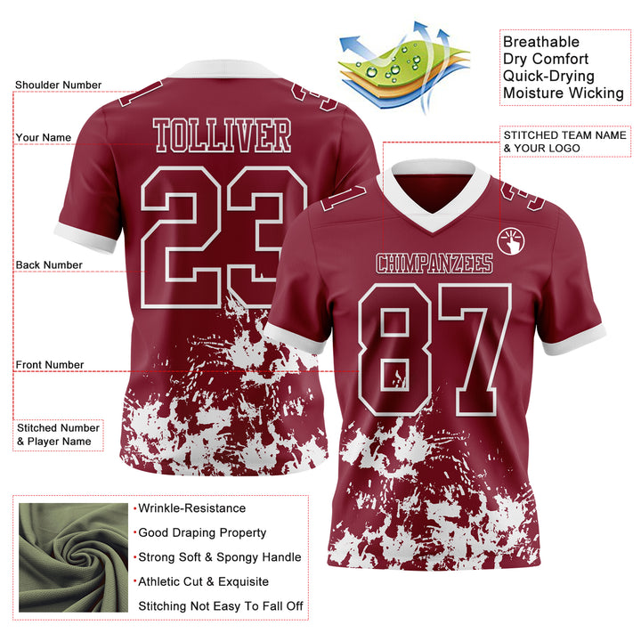Custom Crimson White 3D Pattern Splash Authentic Football Jersey