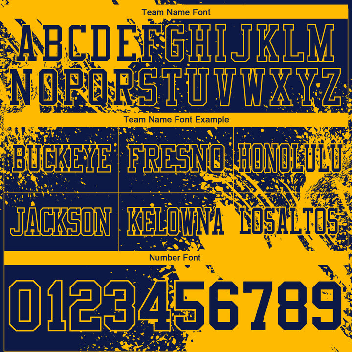 Custom Navy Gold 3D Pattern Abstract Brush Stroke Authentic Football Jersey