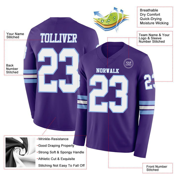 Custom Purple White-Light Blue Long Sleeve Authentic Football Jersey