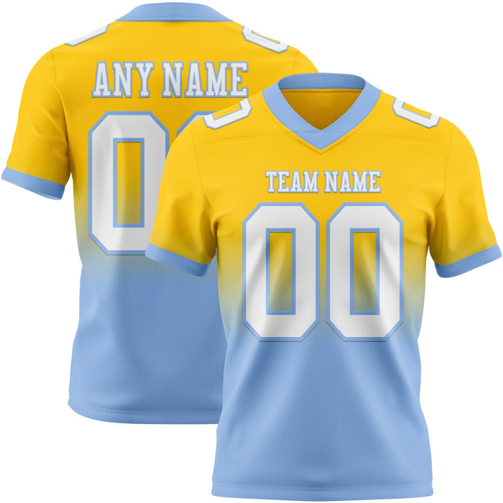 Custom Yellow White-Light Blue Authentic Fade Fashion Football Jersey