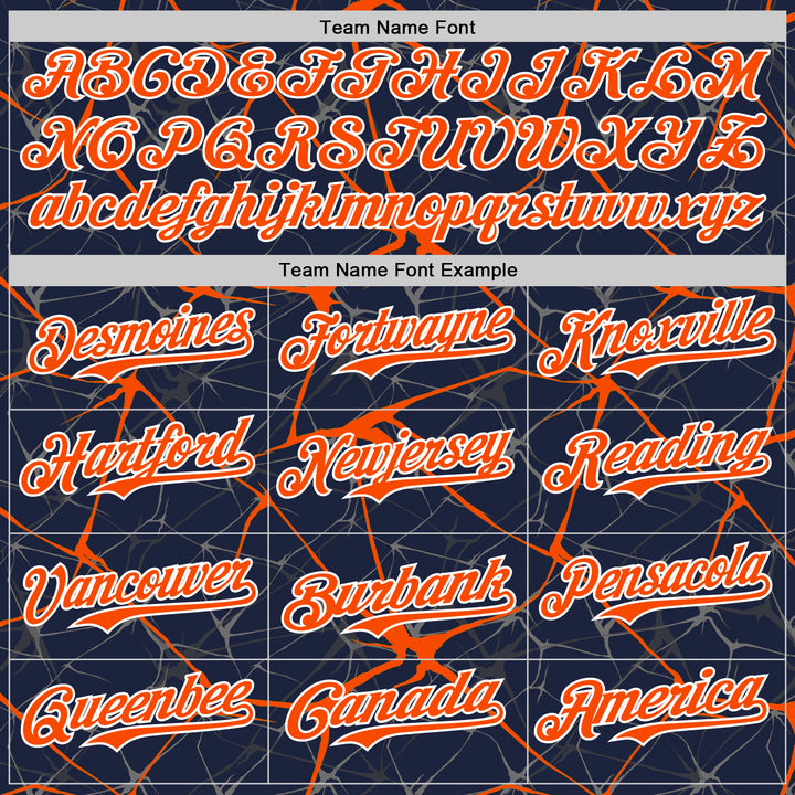 Custom Navy Orange-White Abstract Network 3D Pattern Design Bomber Full-Snap Varsity Letterman Hoodie Jacket