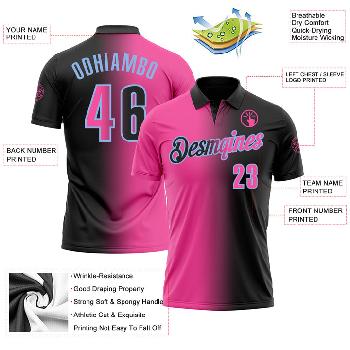 Custom Black Pink-Light Blue 3D Gradient Fashion Performance Polo Shirt