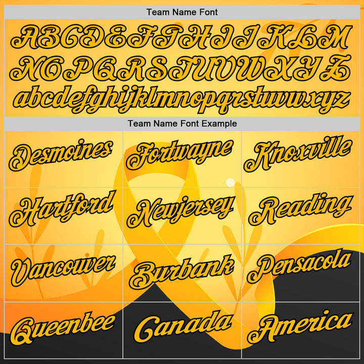 Custom Gold Black 3D Pattern Design Yellow Ribbon Bone Cancer Awareness Performance Polo Shirt