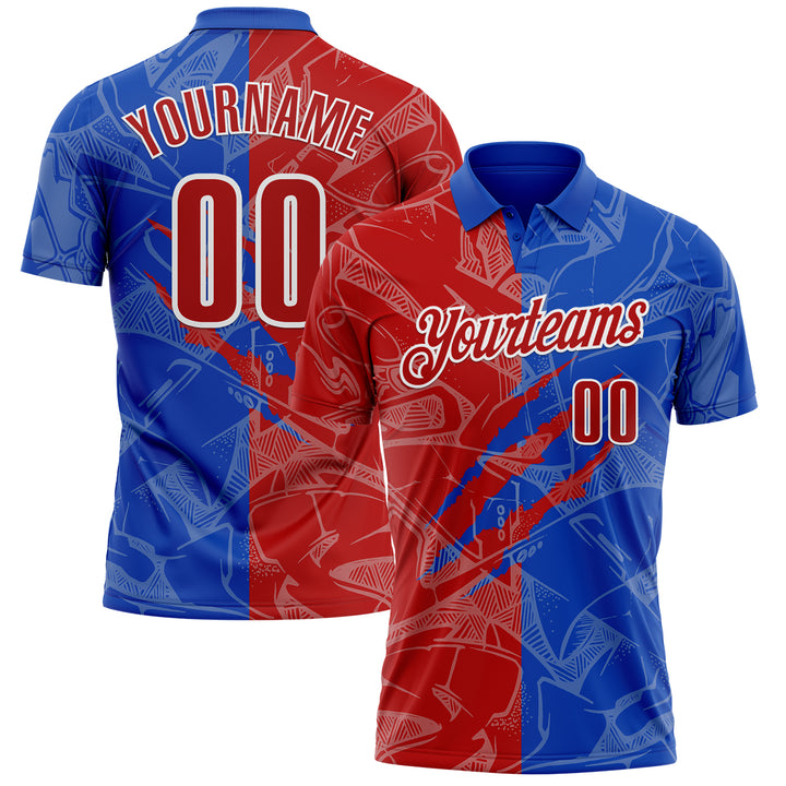Custom Graffiti Pattern Red Thunder Blue-White 3D Scratch Performance Polo Shirt