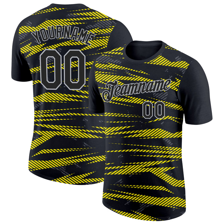 Custom Black Light Yellow-Light Gray 3D Esports Performance T-Shirt