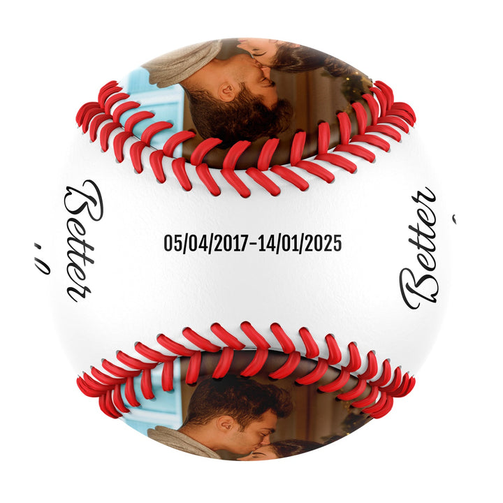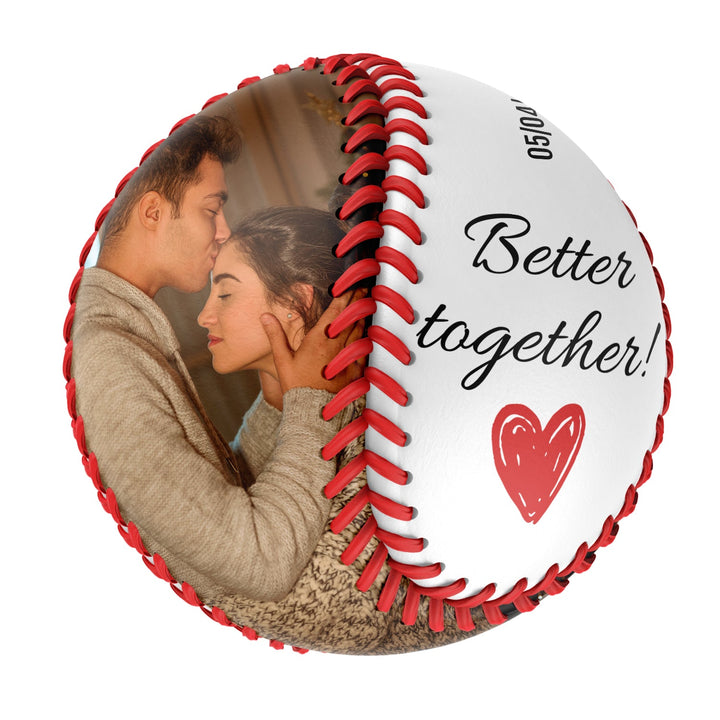 Better Together Personalized Anniversary Name Date Photo White Baseballs