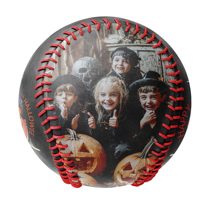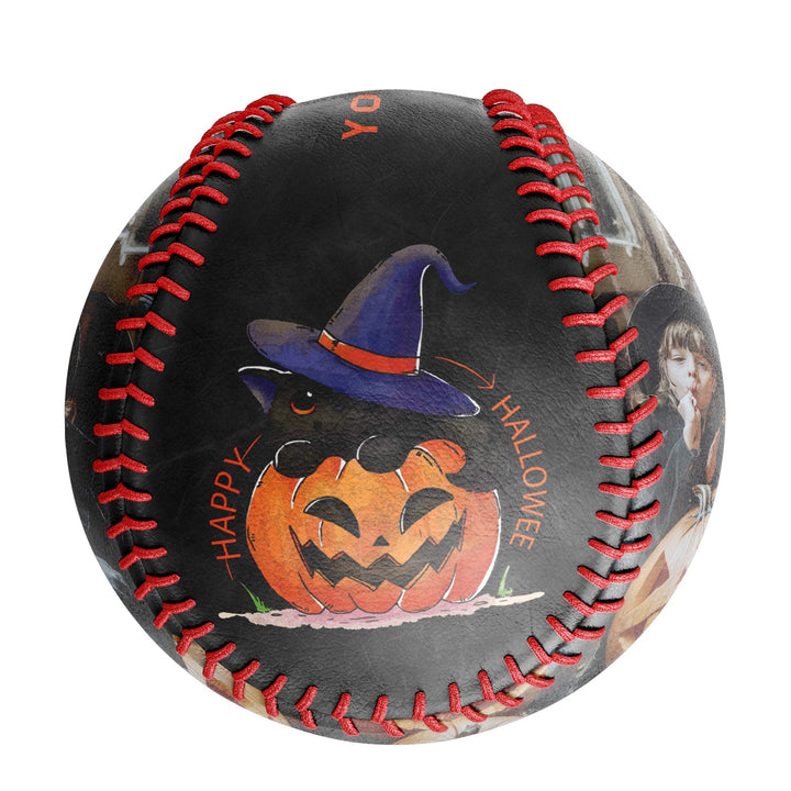 Personalized Black Happy Halloween Pumpkin Photo Baseballs