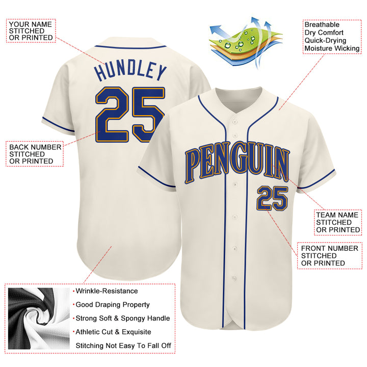 Custom Cream Royal-Gold Authentic Baseball Jersey