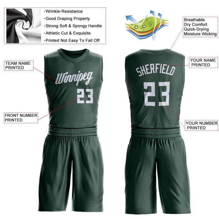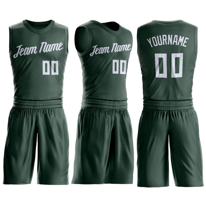 Custom Hunter Green White Round Neck Suit Basketball Jersey